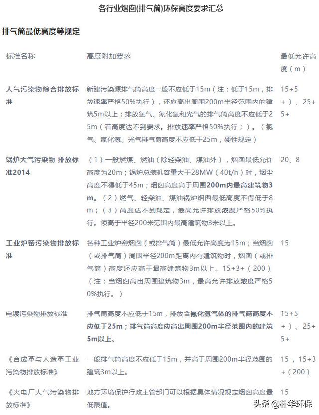 废气排气筒(烟囱)各行业环保要求